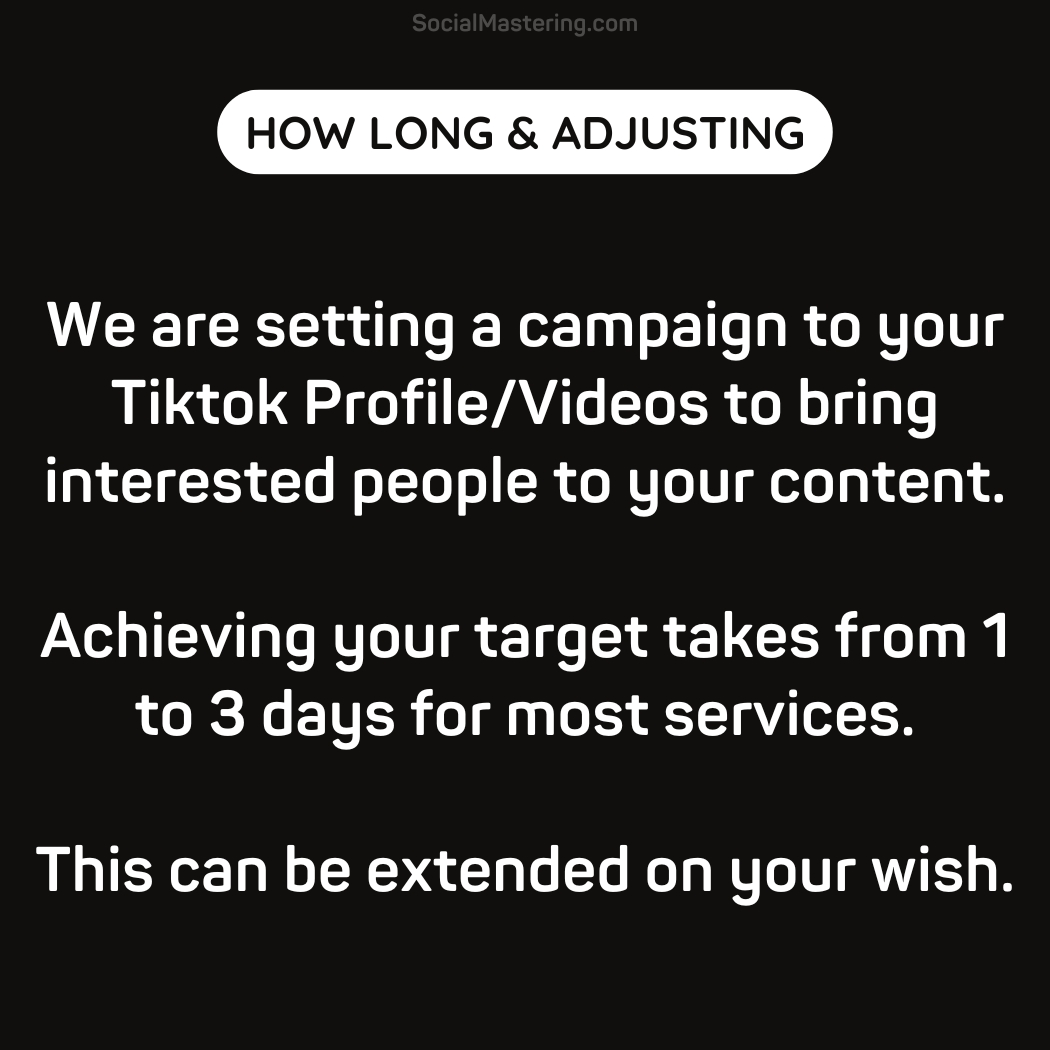 Estimated Reach: Tiktok Views + Likes promotion delivered gradually (a 1,000,000-view plan typically completes within ~1–3 days).