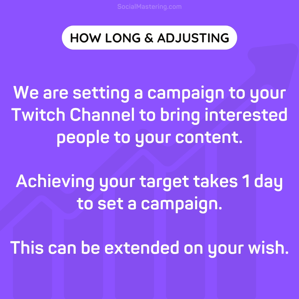 Marketing Campaign that runs automatically for all streams over 30 days to provide you Twitch Livestream Viewers at the same time! It’s designed to deliver Twitch Livestream Viewers directly to all your Twitch Livestreams for 30 Days. We run promotion through ads, creator/owned placements, and trusted blogger networks.